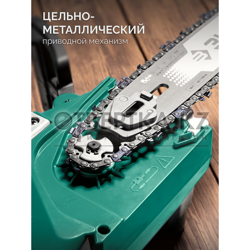 - Высокопроизводительная цепь с шагом 3/8 дюйма позволяет уверенно прорезать толстые ветки