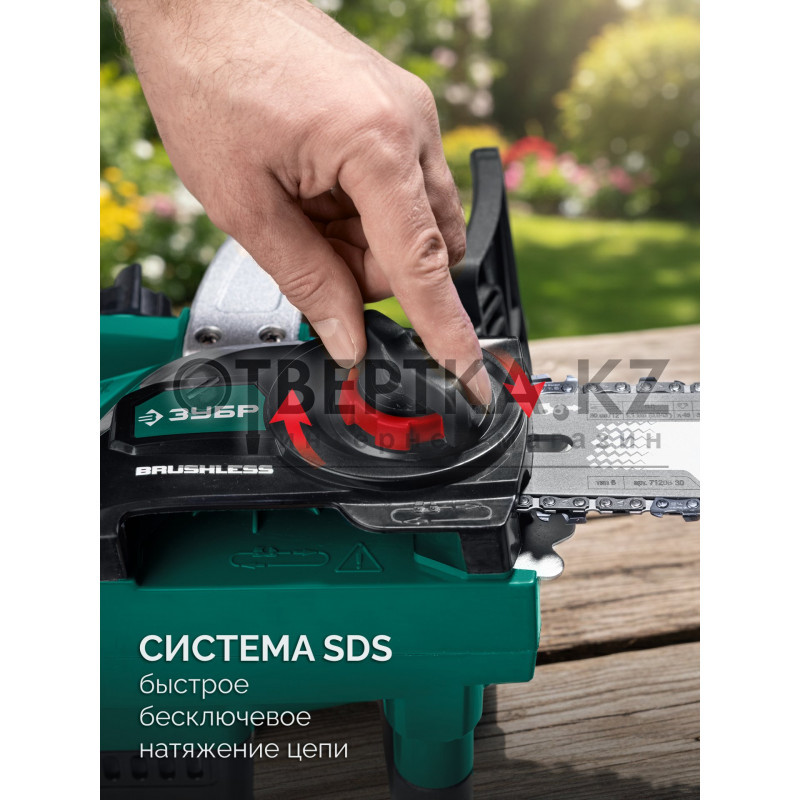 Мощная аккумуляторная цепная пила ЗУБР с напряжением 40В создана для работы в саду, обрезки веток, пиления небольших деревьев, а так же проведения различных строительных и ремонтных работ. Мощный BRUSHLESS двигатель и качественная цепь позволят быстро выполнить работу