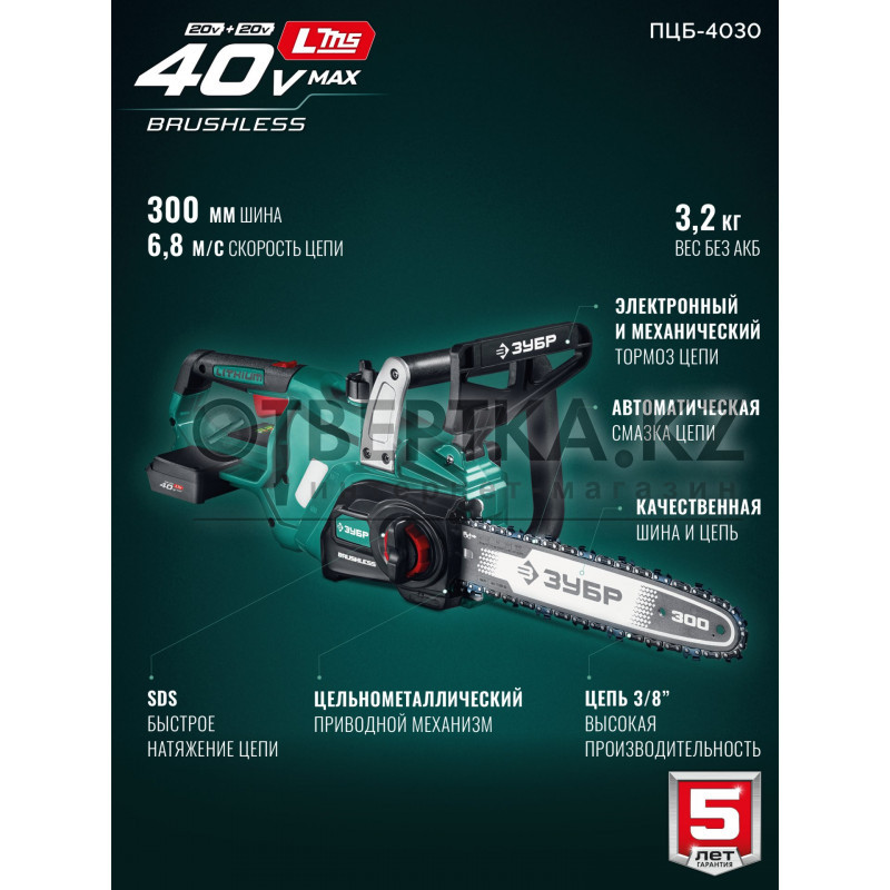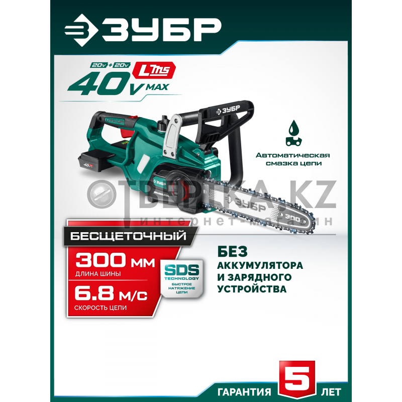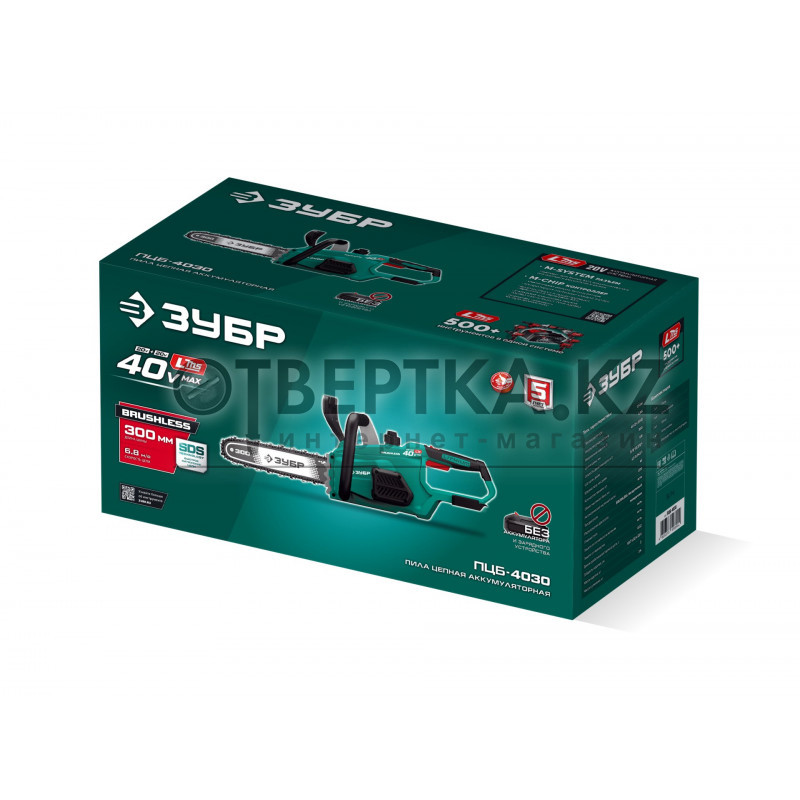 Мощная аккумуляторная цепная пила ЗУБР с напряжением 40В создана для работы в саду, обрезки веток, пиления небольших деревьев, а так же проведения различных строительных и ремонтных работ. Мощный BRUSHLESS двигатель и качественная цепь позволят быстро выполнить работу