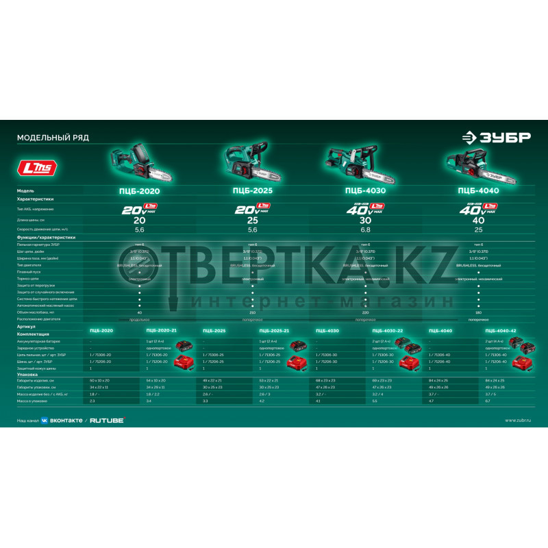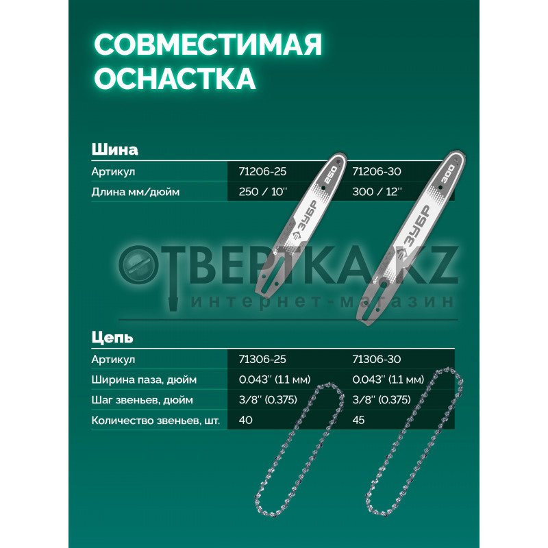 - Качественные шины и цепи ЗУБР обеспечивают отличную производительность
