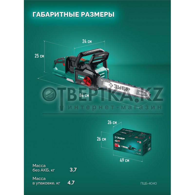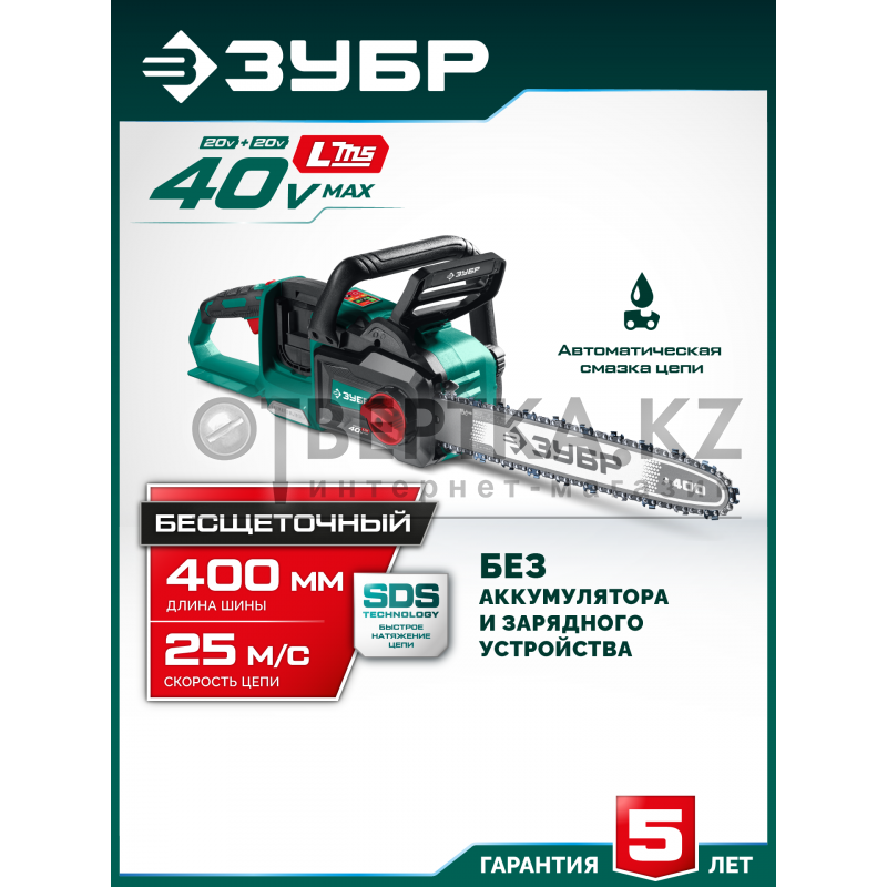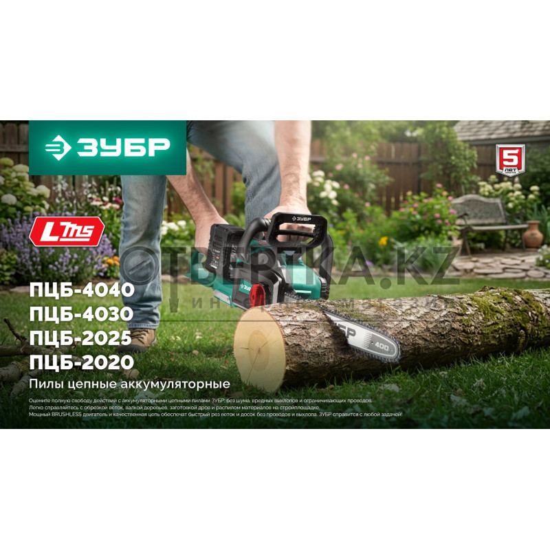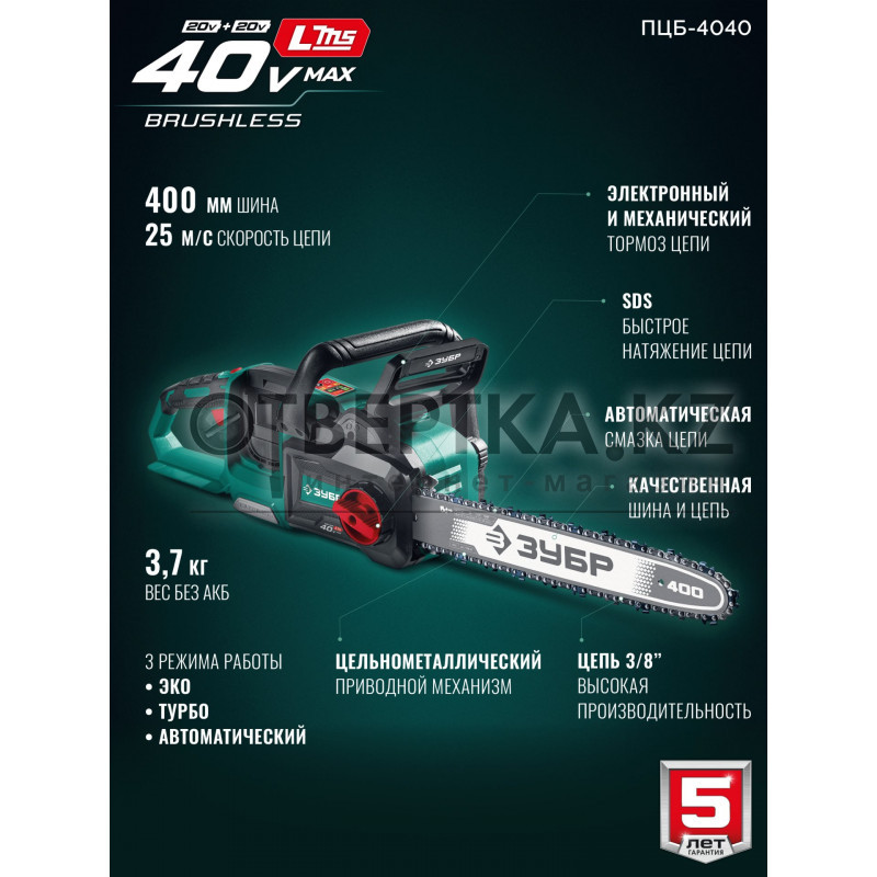 Мощная аккумуляторная цепная пила ЗУБР с напряжением 40В создана для работы в саду, обрезки веток, пиления небольших деревьев, а так же проведения различных строительных и ремонтных работ. Мощный BRUSHLESS двигатель и качественная цепь позволят быстро выполнить работу