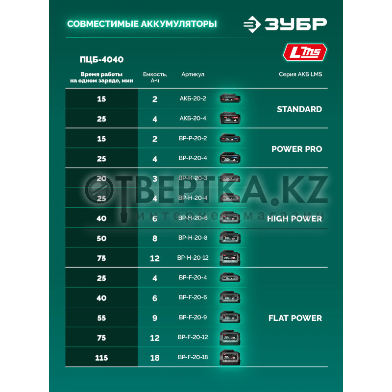Характеристики ЗУБР ПЦБ-4040:
