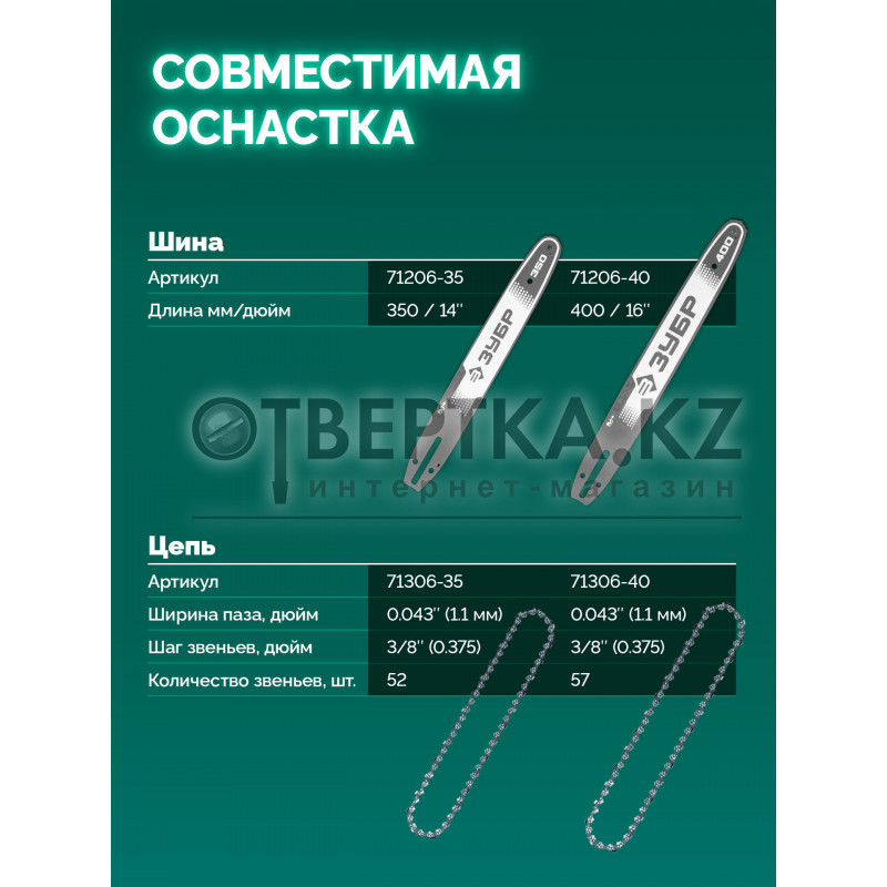 - Качественные шины и цепи ЗУБР обеспечивают отличную производительность