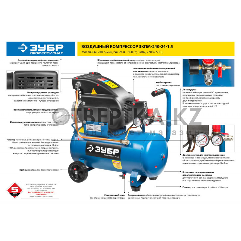Преимущества ЗУБР ЗКПМ-240-24-1.5: